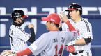 [OSEN=잠실, 조은정 기자]12일 오후 서울 잠실야구장에서‘2020신한은행SOLKBO리그’ LG 트윈스와 SK 와이번스의 경기가 열렸다.8회말 2사 1루에서 LG 김현수가 1타점 적시 3루타를 때려낸 뒤 김재걸 코치와 팔꿈치를 치고 있다. /