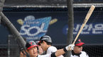 [OSEN=잠실, 조은정 기자]12일 오후 서울 잠실야구장에서‘2020신한은행SOLKBO리그’ LG 트윈스와 SK 와이번스의 경기에 앞서 양팀 선수들이 훈련을 가졌다.SK 이진영 코치가 LG 선수들에게 환한 미소를 짓고 있다. /cej@osen.co.kr