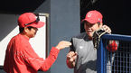 [OSEN=잠실, 조은정 기자]12일 오후 서울 잠실야구장에서‘2020신한은행SOLKBO리그’ LG 트윈스와 SK 와이번스의 경기에 앞서 양팀 선수들이 훈련을 가졌다.SK 김태훈이 코치와 장난을 치고 있다. /cej@osen.co.kr