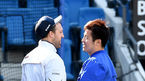 [OSEN=부산, 최규한 기자] 13일 부산 사직야구장에서 ‘2020 신한은행 SOL KBO리그’ 롯데 자이언츠와 두산 베어스의 경기가 열렸다.1회초 2사 1루 상황 두산 김재환이 선제 우월 투런포를 날리고 김태형 감독과 인사를 나누고