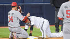 [OSEN=창원, 최규한 기자] 14일 오후 창원 NC파크에서 ‘2020 신한은행 SOL KBO리그’ NC 다이노스와 KT 위즈의 경기가 열렸다.6회초 무사 1루 상황 KT 장성우 타석 때 주자 김민혁이 런다운에 걸려 선발 구창모의 태그에 아웃됐다.
