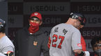 [OSEN=잠실,박준형 기자] 14일 오후 서울 잠실구장에서 ‘2020 신한은행 SOL KBO리그’ LG 트윈스와 SK 와이번스의 경기가 진행됐다.2회초 SK 선두타자 로맥이 선취 솔로홈런을 날리고 염경엽 감독의 축하를 받고 있다. / soul1014@ose
