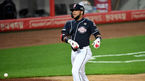 [OSEN=인천, 민경훈 기자] 15일 오후 인천 SK행복드림구장에서 ‘2020 신한은행 SOL KBO리그’ SK 와이번스와 NC 다이노스의 경기가 열렸다.4회초 2사 주자 1,2루 NC 김태군이 좌익수 앞 1타점 적시타를 날린 후 1루에서 기뻐하고 있