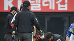 [OSEN=수원 , 곽영래 기자] 16일 오후 수원 KT위즈파크에서 '2020 신한은행 SOL KBO리그' KT 위즈와 삼성 라이온즈의 경기가 열렸다.3회말 2사 2루 구심이 KT 심우준의 파울타구를 맞은 뒤 어지러움을 호소하고 있다. /youngrae@osen.co.kr