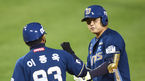 [OSEN=잠실, 곽영래 기자] 19일 오후 서울 잠실야구장에서 '2020 신한은행 SOL KBO리그' 두산 베어스와 NC 다이노스의 경기가 열렸다.7회초 1사 1,2루 NC 권희동이 적시타를 때린뒤 이종욱 코치와 기뻐하고 있다. /youngrae@osen.co.kr