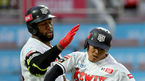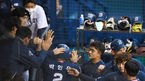 [OSEN=수원, 김성락 기자] 19일 오후 경기도 수원 KT위즈파크에서 '2020 신한은행 SOL KBO리그' KT 위즈와 한화 이글스의 경기가 열렸다.1회말 1사에서 KT 김민혁이 1점 홈런을 날렸다.김민혁이 더그아웃에서로하스와 하이파이브를 하고