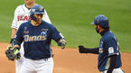 [OSEN=잠실, 곽영래 기자] 19일 오후 서울 잠실야구장에서 '2020 신한은행 SOL KBO리그' 두산 베어스와 NC 다이노스의 경기가 열렸다.1회초 1사 2루 NC 박민우가 나성범의 안타로 득점을 올린 뒤 동료들과 기뻐하고 있다. /youngrae@osen.co.kr