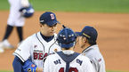 [OSEN=잠실, 곽영래 기자] 19일 오후 서울 잠실야구장에서 '2020 신한은행 SOL KBO리그' 두산 베어스와 NC 다이노스의 경기가 열렸다.1회초 2사 만루 두산 이영하가 김원형 코치와 이야기를 나누고 있다. /youngrae@osen.co.kr