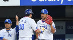[OSEN=대구,박준형 기자] 23일 대구삼성라이온즈파크에서 ‘2020 신한은행 SOL KBO리그’ 삼성 라이온즈와 두산 베어스의 경기가 진행됐다.6회말 2사 3루 삼성 강민호가 2점 홈런을 날리고 허삼영 감독과 하이파이브를 하고 있