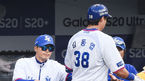 [OSEN=대구,박준형 기자] 23일 대구삼성라이온즈파크에서 ‘2020 신한은행 SOL KBO리그’ 삼성 라이온즈와 두산 베어스의 경기가 진행됐다.6회초 연속타자 볼넷을 허용한 삼성 황동재가 강민호 포수의 독려를 받고 있다 / soul10