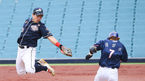 [OSEN=잠실, 최규한 기자] 24일 오후 서울 잠실야구장에서 ‘2020 신한은행 SOL KBO리그’ LG 트윈스와 KT 위즈의 경기가 열렸다.1회초 1사 만루 상황 LG 정근우의 달아나는 2타점 적시타 때 홈을 밟은 김현수가 더그아웃 동료들과