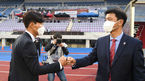[OSEN=부천, 곽영래 기자] 26일 부천 종합운동장에서 '2020 하나원큐 K리그2' 부천 FC와 제주 유나이티드의 경기가 열렸다.제주 남기일 감독과 부천 송성호 감독이 주먹 인사를 하고 있다./youngrae@osen.co.kr