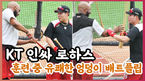 [OSEN=수원, 조은정 기자]26일 오후 경기도 수원 KT위즈파크에서 ‘2020 신한은행 SOL KBO 리그’ KT 위즈와 KIA 타이거즈의 경기가 열린다.경기에 앞서 훈련을 가진 KT 로하스는 송민섭과 최만호 코치와 장난기 넘치는 모습으로