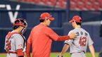 [OSEN=잠실, 지형준 기자] 27일 오후 서울 잠실야구장에서 '2020 신한은행 SOL KBO리그' 두산 베어스와 SK 와이번스의 경기가 열렸다.5회말 2사 1,2루에서 SK 최상덕 코치가 마운드에 올라 문승원을 교체하고 있다. /jpnews@osen.co.kr