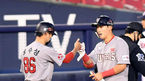 [OSEN=잠실, 조은정 기자]27일 오후 서울 잠실야구장에서 ‘2020신한은행SOLKBO리그’ 두산 베어스와 SK 와이번스의 경기가 열렸다.5회초 2사 주자없는 상황에서 SK 최지훈이 우전 3루타를 때린 뒤 정수성 코치와 주먹을 치고 있