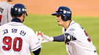 [OSEN=잠실, 조은정 기자]27일 오후 서울 잠실야구장에서 ‘2020신한은행SOLKBO리그’ 두산 베어스와 SK 와이번스의 경기가 열렸다.4회말 2사 1루에서 두산 김재호가 좌전 안타를 때려낸 뒤 고영민 코치와 하이파이브를 하고 있