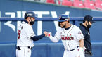 [OSEN=잠실, 조은정 기자]27일 오후 서울 잠실야구장에서 ‘2020신한은행SOLKBO리그’ 두산 베어스와 SK 와이번스의 경기가 열렸다.1회말 1사 1루에서 두산 최주환의 우전 안타 때 1루 주자 페르난데스가 3루까지 진루한 후 김민