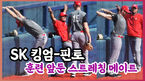 [OSEN=잠실, 조은정 기자]27일 오후 서울 잠실야구장에서 ‘2020신한은행SOLKBO리그’ 두산 베어스와 SK 와이번스의 경기에 앞서 양팀 선수들이 훈련을 가졌다.SK 킹엄과 핀토가 훈련에 앞서 펜스에서 함께 스트레칭을 하고 있