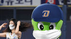 [OSEN=창원, 민경훈 기자] 27일 오후 창원 NC파크에서 ‘2020 신한은행 SOL KBO리그’ NC 다이노스와 키움 히어로즈의 경기가 열렸다.아기공룡 둘리가 NC 응원석에서 응원을 하고 있다. / rumi@osen.co.kr
