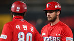 [OSEN=수원, 김성락 기자]27일 오후 수원 KT위즈파크에서 '2020 신한은행 SOL KBO리그' KT 위즈와 KIA 타이거즈의 경기가 열렸다.8회초2사 1루 KIA 터커가 중견수 앞 1루타를 날린 뒤 이현곤 코치와 하이파이브를 하고 있다./ksl0919@osen.co.kr
