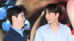 [OSEN=박준형 기자] 28일 오후 서울 성수동 한 까페에서 드라마 '꼰대인턴' 촬영 현장공개 및 기자간담회가 진행됐다.배우 박기웅과 미스터트롯 출신 영탁이 포응을 하고 있다. / soul1014@osen.co.kr