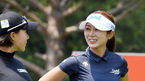 [OSEN=이천, 조은정 기자]28일 오전 경기도 이천시 사우스스프링스 컨트리클럽에서 한국여자프로골프(KLPGA) 투어 제8회 E1 채리티 오픈 1라운드 경기가 열렸다.안소현에 10번홀에서 티샷을 마친 후 이시온과 대화를 하고 있다. /cej@o