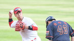 [OSEN=문학,박준형 기자]30일 오후 인천SK행복드림구장에서 KBO리그 SK 와이번스와 한화 이글스의 경기가 진행됐다.1회초 무사1,2루 한화 정진호의 병살타때 SK 선발투수 핀토가 주먹을 쥐며 환호하고 있다. / soul1014@osen.co.kr
