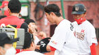[OSEN=문학,박준형 기자]30일 오후 인천SK행복드림구장에서 KBO리그 SK 와이번스와 한화 이글스의 경기가 진행됐다.2회말 이닝종료후 SK 이흥련이 동료들의 축하를 받고 있다. / soul1014@osen.co.kr