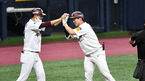 [OSEN=고척, 최규한 기자] 30일 오후 서울 고척스카이돔에서 ‘2020 신한은행 SOL KBO리그’ 키움 히어로즈와 KT 위즈의 경기가 열렸다.8회말 1사 주자없는 상황 키움 김혜성이 3루타를 치고 조재영 코치와 인사를 나누고 있다.