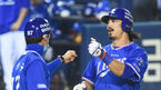 [OSEN=잠실,박준형 기자] 3일 오후 서울 잠실구장에서 KBO리그 LG 트윈스와 삼성 라이온즈의 경기가 진행됐다.7회말 1사 2루 삼성 살라디노가 2점 홈런을 날리고 더그아웃에서 허윤동과 하이파이브를 하고 있다. / soul1014@osen.co.kr