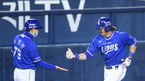 [OSEN=잠실,박준형 기자] 3일 오후 서울 잠실구장에서 KBO리그 LG 트윈스와 삼성 라이온즈의 경기가 진행됐다.7회말 1사 2루 삼성 살라디노가 2점 홈런을 날리고 박진만 코치와 하이파이브를 하고 있다. / soul1014@osen.co.kr