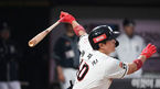 [OSEN=수원 , 민경훈 기자] 3일 오후 수원 KT위즈파크에서 '2020 신한은행 SOL KBO리그' KT 위즈와 두산 베어스의 경기가 열렸다.4회말 1사 KT 황재균이 좌중월 솔로홈런을 날리고 있다. /rumi@osen.co.kr