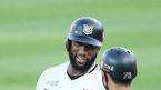 [OSEN=수원 , 민경훈 기자] 3일 오후 수원 KT위즈파크에서 '2020 신한은행 SOL KBO리그' KT 위즈와 두산 베어스의 경기가 열렸다.1회말 1사 2,3루에서 KT 로하스가 선취 2타점 적시타를 날린 후 1루에서 박기혁 코치와 하이파이브를 하고