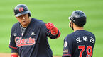 [OSEN=광주, 최규한 기자] 3일 오후 광주-기아 챔피언스필드에서 '2020 신한은행 SOL KBO리그' KIA 타이거즈와 롯데 자이언츠의 경기가 열렸다.1회초 2사 2루 상황 롯데 이대호가 선제 1타점 적시타를 날리고 1루에 안착해 오태근 코치와