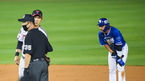 [OSEN=잠실,박준형 기자] 3일 오후 서울 잠실구장에서 KBO리그 LG 트윈스와 삼성 라이온즈의 경기가 진행됐다.9회초 무사 1루 삼성 박찬도의 내야땅볼때 최동환의 송구에 맞은 윤태수 2루심이 최동환을 바라보고 있다. / soul1014@osen.c
