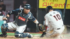 [OSEN=수원,박준형 기자]4일 오후 경기도 수원시 수원KT위즈파크에서 KBO리그 KT 위즈와 두산 베어스의 경기기 진행됐다.5회말 1사 1루 KT 문상철의 1타점 적시타때 1루 주자 황재균이 홈쇄도해 세이프되고 있다. / soul1014@osen.co.kr
