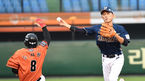 [OSEN=잠실, 지형준 기자] 5일 오후 서울 잠실야구장에서 ‘2020 신한은행 SOL KBO리그’ 두산 베어스와 KIA 타이거즈의 경기가 열렸다.1회말 1사 1루에서 KIA 박찬호가 두산 김재환의 유격수 땅볼에 병살를 완성하고 있다. /jpnews@