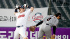 [OSEN=부산, 김성락 기자] 9일 부산 사직야구장에서 ‘2020 신한은행 SOL KBO리그’ 롯데 자이언츠와 한화 이글스의 경기가 열렸다.4회초 1사 상황 한화 최인호가 우익수 앞 1루타를 날린 뒤 세레모니를 하고 있다./ksl0919@osen.co.kr