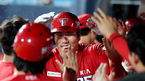 [OSEN=수원 , 곽영래 기자] 10일 오후 수원 KT위즈파크에서 '2020 신한은행 SOL KBO리그' KT 위즈와 KIA 타이거즈의 경기가 열렸다.2회초 1사 1,2루 KIA 유민상이 스리런 홈런을 때린 뒤 동료들의 축하를 받고 있다. /youngrae@osen.co.kr