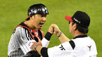 [OSEN=창원, 김성락 기자] 11일 창원NC파크에서 ‘2020 신한은행 SOL KBO리그’ NC 다이노스와 두산 베어스의 경기가 열렸다.8회초 2사 1,2루 두산 정수빈이 3점 홈런을 날리고 홈인한 뒤 최주환, 이유찬과 하이파이브를 하고 있다