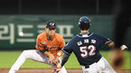[OSEN=대전, 곽영래 기자] 13일 오후 대전 한화생명이글스파크에서 '2020 신한은행 SOL KBO리그' 한화 이글스와 두산 베어스의 경기가 열렸다.3회초 2사 두산 김재호가 2루 도루때 1루 김민하의 송구 실책으로 2루까지 진루하고 있다. /y