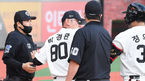 [OSEN=인천, 박준형 기자] 14일 오후 인천SK행복드림구장에서 '2020 신한은행 SOL KBO리그' SK와이번스와 KIA 타이거즈의 경기가 진행됐다.3회말 박근영 구심이 삼진아웃 당한뒤 방망이 부러트린 정의윤에게 주의를 주기 위해 SK 더그아