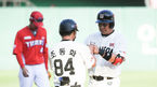 [OSEN=잠실, 조은정 기자] 14일 오후 서울 잠실야구장에서 ‘2020신한은행SOLKBO리그’ LG 트윈스와 롯데 자이언츠의 경기가 열렸다.4회초 1사 2루 롯데 한동희의 달아나는 우전 1타점 적시타에 홈을 밟은 오윤석이 이 허문회 감