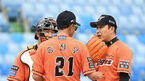 [OSEN=대전, 곽영래 기자] 14일 오후 대전 한화생명이글스파크에서 '2020 신한은행 SOL KBO리그' 한화 이글스와 두산 베어스의 서스펜디드 경기가 열렸다.8회초 2사 2루 한화 송진우 코치가 마운드에 올라 정우람과 이야기를 나누고 있