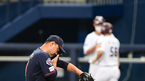 [OSEN=고척, 지형준 기자] 17일 오후 서울 고척스카이돔에서 ‘2020 신한은행 SOL KBO리그’ 키움 히어로즈와 롯데 자이언츠의 경기가 열렸다.6회말 1사 1루에서 롯데 송승준이 키움 이지영에 볼넷을 허용하며 땀을 닦고 있다. /