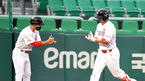 [OSEN=고척, 지형준 기자] 17일 오후 서울 고척스카이돔에서 ‘2020 신한은행 SOL KBO리그’ 키움 히어로즈와 롯데 자이언츠의 경기가 열렸다.3회초 1사 3루에서 롯데 전준우가 투런포를 날리고 마차도와 기뻐하고 있다. /jpnews@o