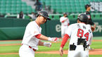 [OSEN=고척, 지형준 기자] 17일 오후 서울 고척스카이돔에서 ‘2020 신한은행 SOL KBO리그’ 키움 히어로즈와 롯데 자이언츠의 경기가 열렸다.3회초 1사 3루에서 롯데 전준우가 투런포를 날리고 허문회 감독과 기뻐하고 있다. /j