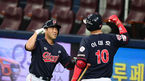 [OSEN=고척, 지형준 기자] 17일 오후 서울 고척스카이돔에서 ‘2020 신한은행 SOL KBO리그’ 키움 히어로즈와 롯데 자이언츠의 경기가 열렸다.3회초 1사 3루에서 롯데 전준우가 투런포를 날리고 정훈과 기뻐하고 있다. /jpnews@osen.