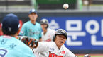 [OSEN=수원,박준형 기자] 25일 오후 수원KT위즈파크에서 KBO리그 KT 위즈와 NC 다이노스의 더블헤더 1차전 경기가 진행됐다.3회말 1사 1,2루 KT 강백호의 타석 1루 주자 조용호가 견제사 당한뒤 아쉬워하고 있다. /soul1014@osen.co.kr