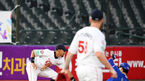 [OSEN=부산, 지형준 기자] 26일 부산 사직야구장에서 ‘2020 신한은행 SOL KBO리그’ 롯데 자이언츠와 삼성 라이온즈의 경기가 열렸다.5회초 무사에서 롯데 정훈이 삼성 이학주의 1루 강습 타구에 왼 어깨 부분을 맞고 괴로워하